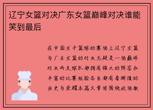 辽宁女篮对决广东女篮巅峰对决谁能笑到最后